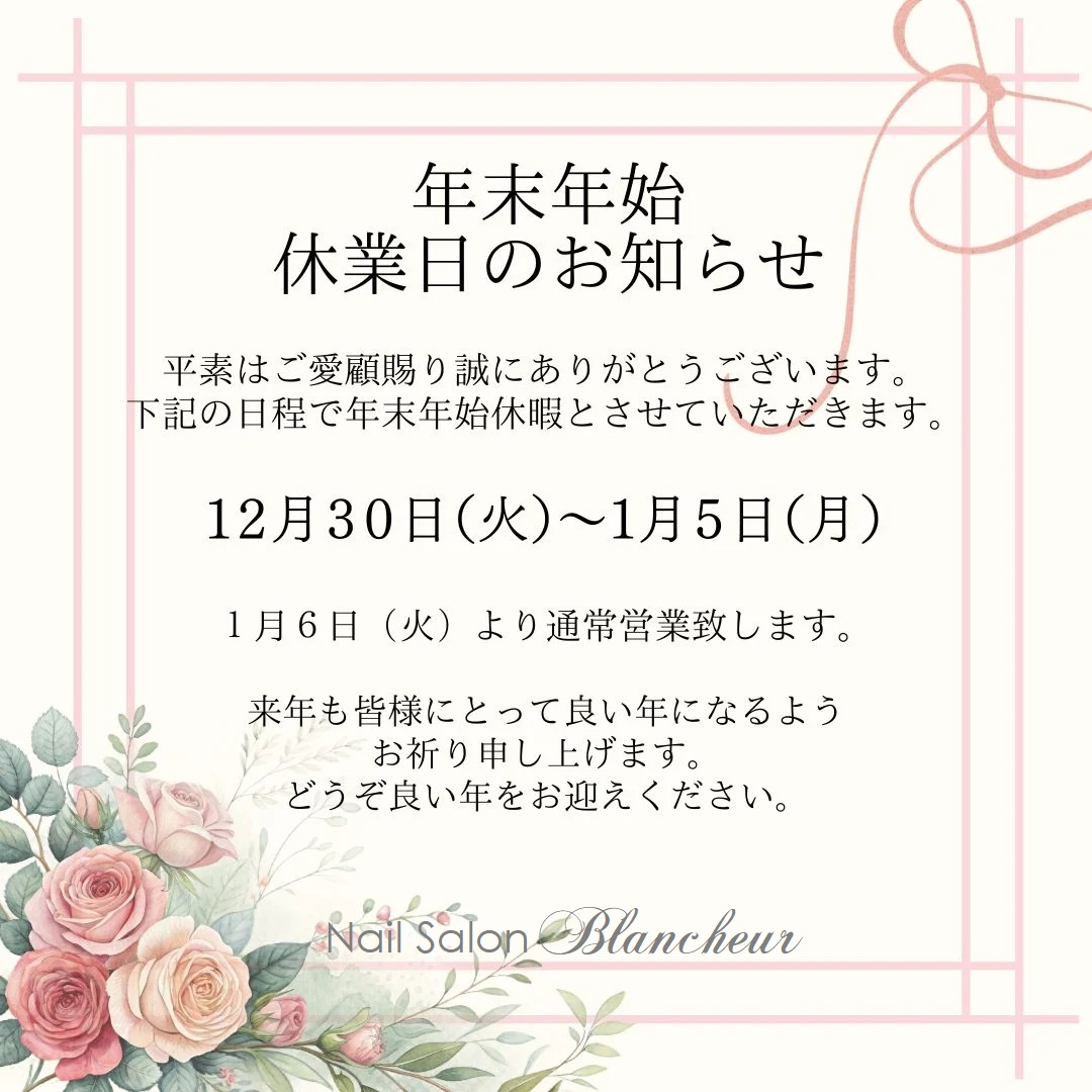 年末年始休業日のお知らせ