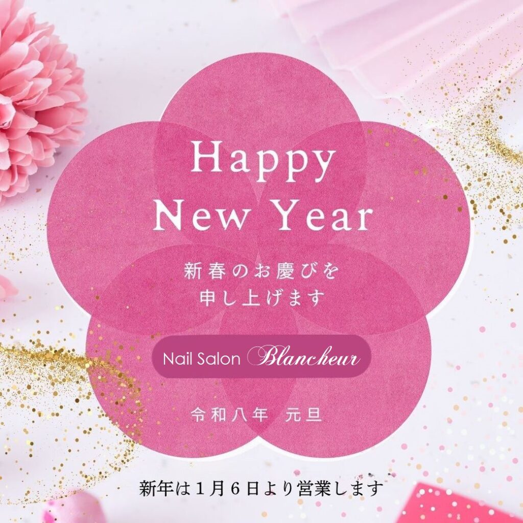 新年あけましておめでとうございます 2026/01/01 平素はご愛顧賜り、誠にありがとうございます。 🌸笑門来福🌸 新しい1年が始まりました🐎 みなさまにとって明るく楽しい年になりますように☀️ 本年もよろしくお願いいたします! Nail Salon Blancheur